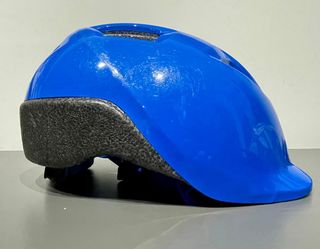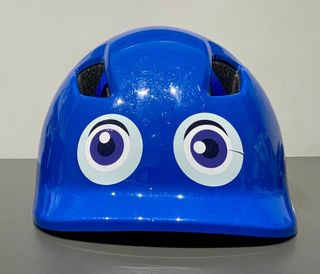 Casco de bicicleta para niños con un diseño llamativo. - Color azul brillante. - Decorado con dos grandes ojos. - Acolchado interior para mayor comodidad. - Talla XS. - Apenas usado.