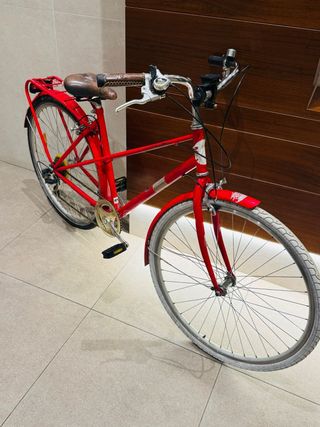 Bicicleta de paseo en perfecto estado y con poco uso,como nueva . Cómoda, ideal para desplazamientos urbanos. - Color azul. - Con luces delantera y trasera. - Cesta delantera.Se puede quitar y poner - Portabultos trasero.Se puede quitar y poner. - Ruedas nuevas. - Sillín como y acolchado.