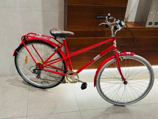 Bicicleta de paseo en color rojo. - Cuadro de metal. - Sillín de cuero. - Portabultos trasero. - Guardabarros.