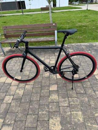 Bicicleta urbana Crest State Fixie en color negro. Ideal para desplazamientos por la ciudad. Se le pusieran varios extras como el sillín, los puños, la pata de cabra y el timbre. Apenas se ha usado Incluye luz delantera y trasera No negociable
