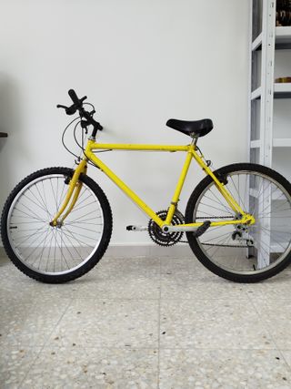Bicicleta de montaña en color amarillo, ideal para adolescentes o adultos jóvenes. Cuadro de aluminio ligero y resistente. - Cuadro de aluminio. - Ruedas de 29 pulgadas. - Frenos de disco. - Cambio Shimano.