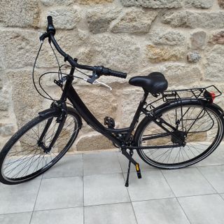 Bicicleta urbana de color negro, ideal para desplazamientos en la ciudad. Revisada, funcionando perfectamente. Está como nueva, prácticamente no se ha usado. - Sillín nuevo. - Portaequipajes trasero. - Guardabarros delantero y trasero. Más bicicletas en nuestra tienda. Entrega a domicilio GRATIS en Xinzo de Limia y Ourense. Para otras zonas de Galicia consultar