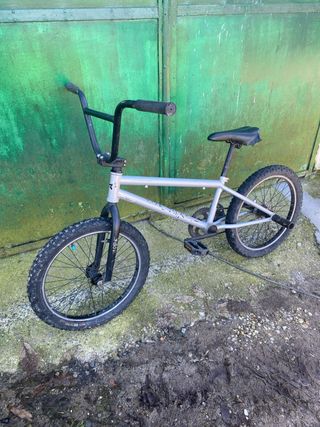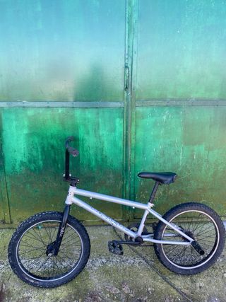 Bicicleta BMX de color gris y negro. - Cuadro de metal. - Ruedas todoterreno. - Manillar de BMX.