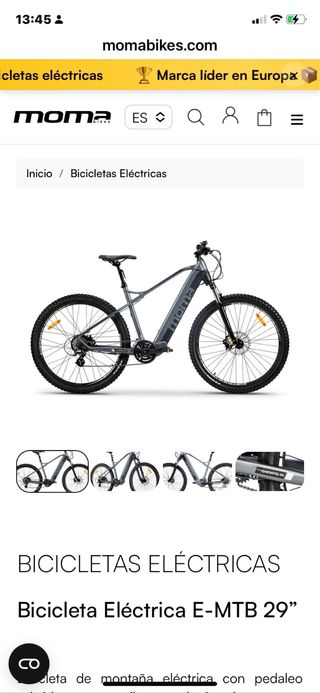 Bicicleta eléctrica Moma EMTB con ruedas de 29 pulgadas. - Cuadro de aluminio. - Motor eléctrico integrado. - Frenos de disco hidráulicos.