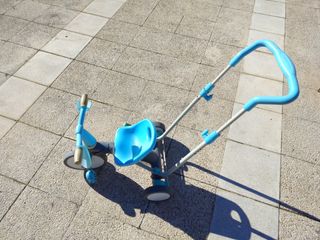 Se vende conjunto de bicicleta infantil Btwin y patinete Juguettos.Sillon mirar última foto Juguete - Bicicleta de color azul con detalles blancos y dibujos. - Patinete de 3 ruedas en color azul y amarillo. Juguetes niños