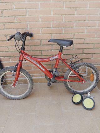 Bicicleta para niñas o niños, con algunas señales de uso. Ideal para aprender a montar en bici. - Tiene ruedas de 16 pulgadas. - Está en buen estado general.