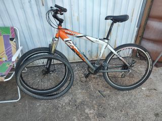 Bicicleta de montaña United Venus, en buen estado. Ideal para paseos por la ciudad o montaña. Falta disco de freno trasero y pastillas del delantero, porque la he tenido en rodillo, cubierta trasera de carretera, doy la de todo terreno - Marca: United - Modelo: Venus - Cuadro de aluminio - Suspensión delantera - Frenos de disco - Llantas en buen estado