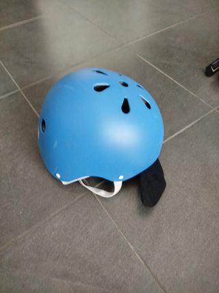 Casco para bicicleta infantil, color azul. Está en buen estado, apenas tiene señales de uso. - Talla: consultar medidas. - Color azul claro. - Diseño ligero y cómodo.