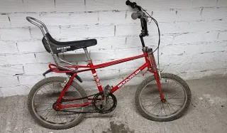Bicicleta clásica BH Bicicross en color rojo. Un modelo icónico para los amantes del BMX. - Cuadro de acero. - Ruedas de 20 pulgadas. - Sillín largo con respaldo. - Manillar cromado.