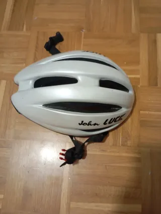Casco de bicicleta de color blanco, con correas ajustables. - Diseño ventilado. - Correas negras con cierre.