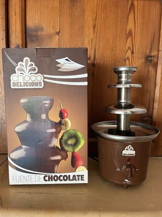 Fuente de chocolate SYTECH para crear cascadas de chocolate. - Diseño elegante en tono marrón y detalles plateados. - Fabricada con materiales duraderos.
