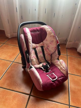 Cuco para silla de bebé con un bonito estampado floral en tonos rosas y fucsia. Es ligero y fácil de transportar. - Diseño con flores rosas y detalles en blanco. - Asa de transporte negra. - Incluye arnés de seguridad. - marca: Die Storchenmühle