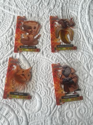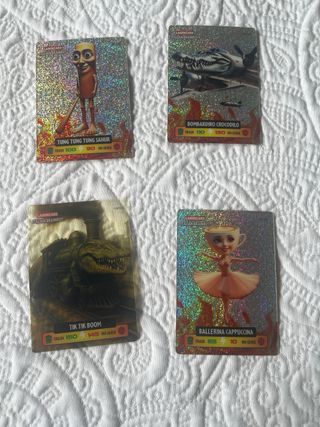 Conjunto de 4 cartas coleccionables Lamicards Italian Brainrot. - Ballerina Cappuccina - Bombardiro Crocodilo - Trippi Troppi - Tung Tung Tung Sahur LAS VENDO INDIVIDUALES A 1€. HÁBLAME Y TE VENDO LAS QUE QUIERAS.