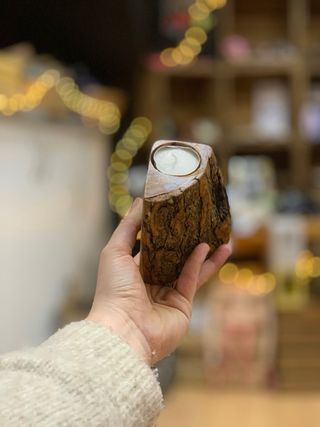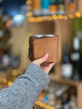 Portavelas hecho a mano con madera de carrasca, para celas de te.