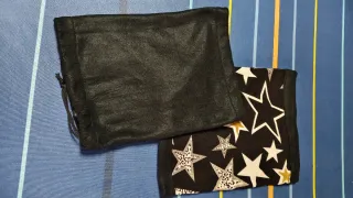 Bolso de estilo motero con un diseño llamativo. Modelo rockero tipo chupa. - Decorado con tachuelas plateadas. - Cierre de cremallera. - Asa de cadena. - Bolsillo frontal con botón a presión. Lleva dos bolsillos interiores uno con cremallera. Muy original, solo usado una vez para una boda, está como nuevo. Medidas alto 17 cm. ancho 25cm.