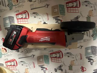 Amoladora angular inalámbrica Milwaukee M18. - Batería REDLITHIUM M18 de 5.0 Ah incluida. - Disco de corte negro.