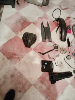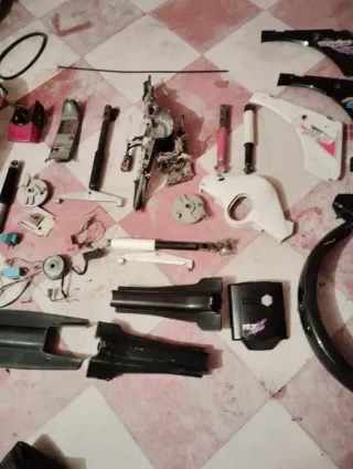 Conjunto de piezas de repuesto para vespino. - Componentes en color negro, rosa y blanco. - Variedad de partes para reparación o personalización. Envío a cualquier persona!!