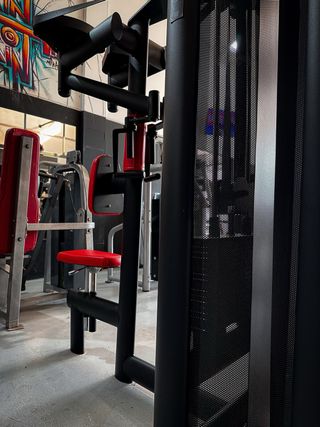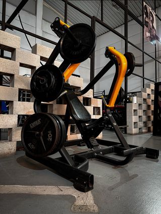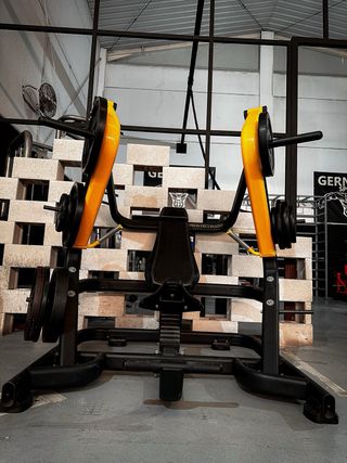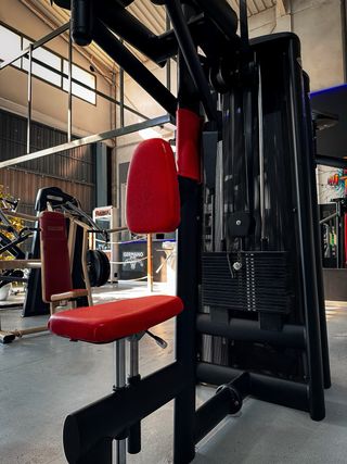 Máquina de gimnasio profesional, ideal para entrenamientos completos. - Estructura robusta y duradera. - Tapicería negra acolchada. - Diseño compacto para optimizar el espacio.
