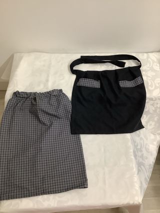 Falda de estilo casero con un diseño de cuadros y una sección inferior en color negro. - Cintura con detalle fruncido. - Dos bolsillos frontales con solapa de cuadros. - Lazos para atar en la cintura.