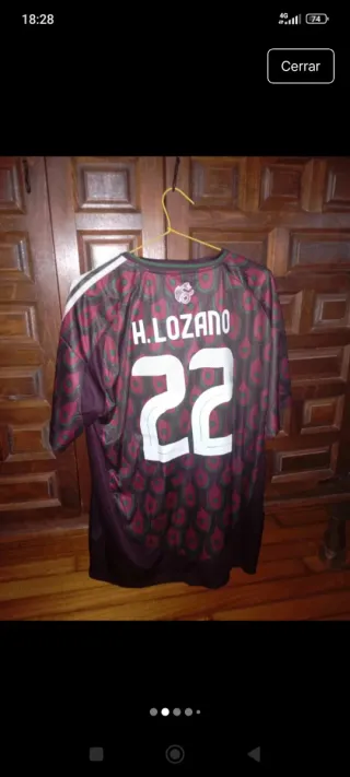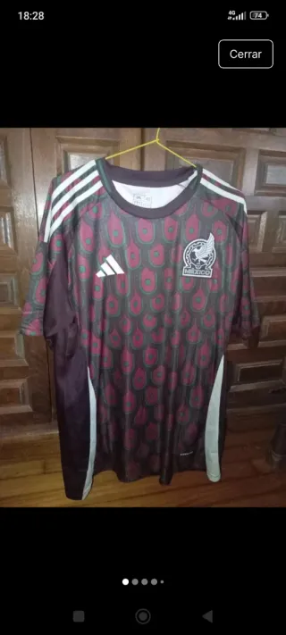 Camiseta de fútbol de México, con el número 7. - Diseño con las tres franjas de Adidas en los hombros. - Escudo del equipo en el pecho. - Detalles de color verde y rojo en el bajo.