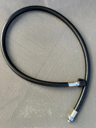 Latiguillo de baja presión para traje seco de buceo. Diseñado para conectar el traje seco a la fuente de aire. - Longitud: 1 metro aprox. - Conexiones: 1 x DIN (hembra) y 1 x Manguera (macho). - Material: Goma negra. - Presión máxima: 10 bar.