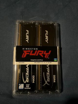 Kit de memoria RAM Kingston Fury DDR4 de 16GB (2 módulos de 8GB cada uno). Velocidad de 3200MT/s con latencia CL16. - Capacidad total: 16GB (2x8GB) - Tipo de memoria: DDR4 - Frecuencia: 3200MT/s - Latencia: CL16-18-18 - Voltaje: 1.35V - Certificación Intel XMP