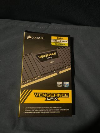 Kit de memoria RAM Corsair Vengeance LPX. - Capacidad total: 32GB (2 módulos de 16GB cada uno). - Tipo de memoria: DDR4. - Velocidad: 3200MHz. - Diseño de bajo perfil para alta compatibilidad.