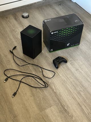 Consola Xbox Series X con disco duro de 1TB, mando y su caja original. El unico detalle es que el mando tiene un poco de Drift en el joystick, por lo demas esta en perfecto estado, usada muy poco. - Incluye todos los cables necesarios. - Empaquetado original. Para cualquier duda estoy disponible Envio disponible! Rapido y seguro ✅