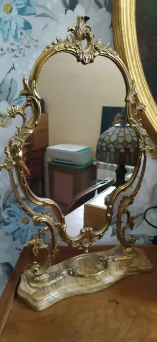 Espejo de tocador antiguo dorado