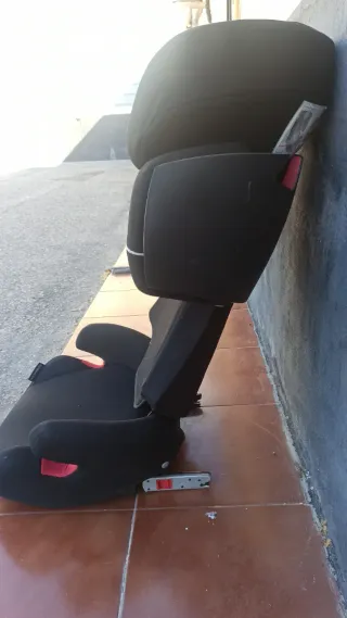 Silla de coche para niños, con sistema isofix. De 15 a 36 kg. Se puede separar del respaldo y convertir en un cojín elevador para cuando es algo mayor. - Tapicería negra. - Respaldo ajustable. - Reposacabezas integrado.