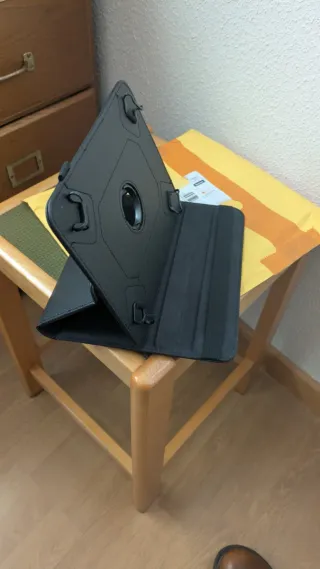 Funda protectora para tablet de 8 pulgadas. Diseño giratorio y color negro. - Material exterior de cuero sintético. - Interior suave para proteger la pantalla. - Sistema de sujeción con correas elásticas. - Permite colocar la tablet en posición vertical u horizontal.