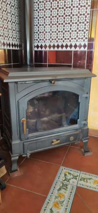 Estufa de leña de metal y cristal