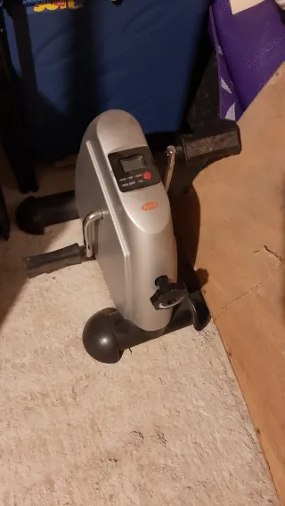 Mini bicicleta estática JOCCA, ideal para ejercitar piernas y brazos en casa. Su diseño compacto permite guardarla fácilmente. - Pantalla digital que muestra tiempo, distancia y calorías. - Resistencia ajustable mediante dial. - Pedales con correas para mayor sujeción. -Va con pilas Funciona estupendamente