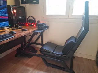 Asiento de simulación de carreras. Cockpit con algun signo de desgaste en la parte trasera del asiento De los unicos que te permite ajustar la postura para F1 o GT - Diseño ergonómico para largas sesiones. - Estructura robusta y duradera. - Compatible con volantes direct drive y pedales. Solo se vende el cockpit ! Volante y pedales no.