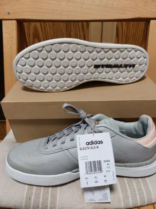 Zapatillas Adidas Sleuth DLX W en talla 40. Diseño moderno y cómodo. - Color gris. - Suela de goma con tecnología Stealth. - Detalle en el talón en color rosa pálido.