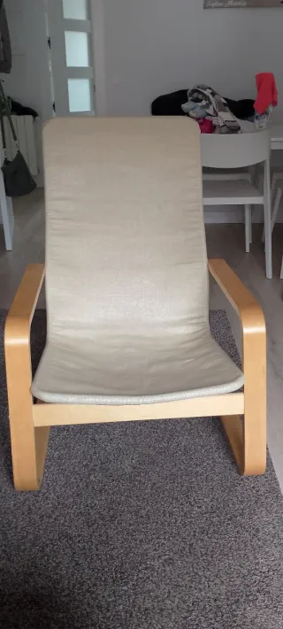 Butaca mecedora beige y madera
