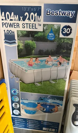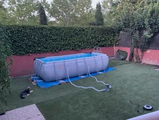 Piscina familiar de fácil montaje, ideal para disfrutar del verano en casa. Incluye depuradora. - Dimensiones: 4,04 x 2,01 - Usada solo 1 año - Estructura resistente.