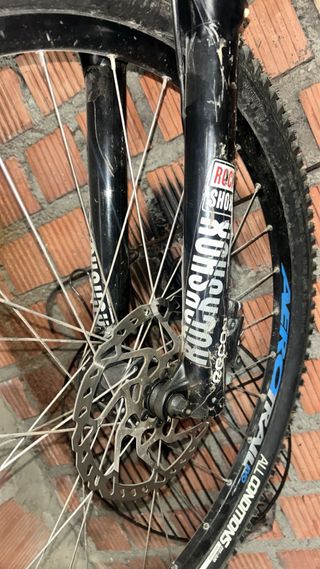Bicicleta Btwin 520 con horquilla Rock Shox. - Horquilla Rock Shox. - Frenos de disco. - Llanta AERO ALL CONDITIONS. esta sucia por falta de uso