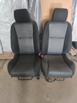 Conjunto de asientos delanteros para Toyota Corolla Verso de 7 plazas. - Tapicería de tela en color negro y gris. - Reposacabezas integrados. - Incluye anclajes y cinturones de seguridad.