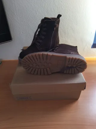 Botas de ante marrón con cordones, con un solo uso. - Material exterior de ante. - Cierre con cordones. - Suela de goma resistente.