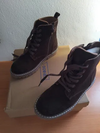 Botas de invierno para niño, nuevas a estrenar. - Color marrón. - Cierre con cordones y cremallera lateral. - Suela de goma antideslizante. - Material exterior de ante.
