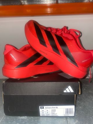 Zapatillas de running Adidas Adizero Evo SL en talla 44. Diseñadas para ofrecer un rendimiento óptimo. - Modelo: Adizero Evo SL - Tecnología Lightstrike Pro - Color: Rojo y negro
