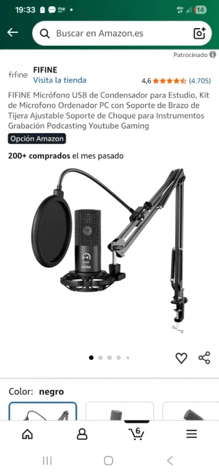Micrófono USB de condensador FIFINE en color negro, ideal para estudio, PC, grabación, podcasting y gaming. Incluye soporte de brazo de tijera ajustable y soporte de choque. - Micrófono USB de condensador - Color negro - Soporte de brazo de tijera ajustable - Soporte de choque incluido