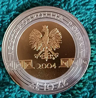 Moneda conmemorativa de 10 Zloty de Polonia. - Diseño de los Juegos Olímpicos de Atenas 2004. - Grabado de un atleta en movimiento. - Borde dorado con inscripciones. Plata 925‰. Tahs: oro, plata, euro, dolar, eagle, libertad, panda.