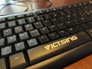Teclado negro con cable de la marca Victsing. Compatible con la mayoría de ordenadores y sistemas operativos, se conecta de forma rápida y sencilla. De tamaño completo con bloque numérico lateral. Dimensiones aproximadas: 45 × 14 × 3 cm. Producto en buen estado, listo para usar. NO incluye caja. Precio NO negociable.