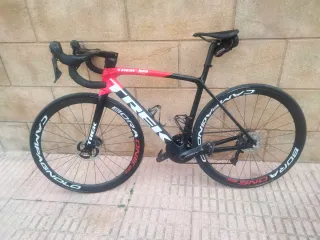 Bicicleta de carretera Trek Émonda SLR con acabado Project One. Un modelo de alto rendimiento con un diseño exclusivo. Talla 54. - Cuadro de carbono ligero. El tope de gama - Ruedas Bontrager, pegatinas campagnolo. - Frenos de disco. Transmisión ultegra. 34-50 y casset 11-32 Ruedas de cubierta Bici muy ligera y muy compensada para todos los terrenos
