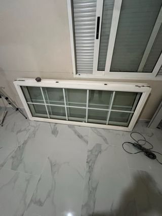 Ventana balconera de puerta con marco blanco. - Marco de color blanco. - Diseño con múltiples divisiones.medidas 238 alto por 178 ancho