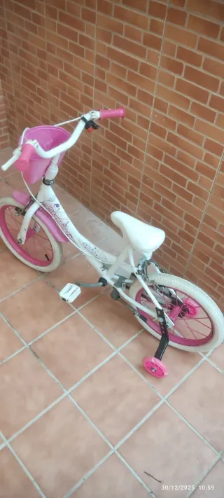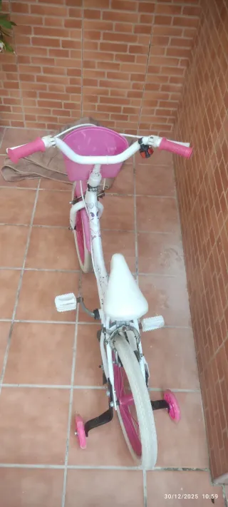 Bicicleta para niña de entre 6 y 10 años de unicornio. Las ruedas creo que son de 20 pulgadas. Tiene cierto desgaste del tiempo pero ha estado bien mantenida. Abierto a ofertas, lo importante es que siga dando diversión por más tiempo. - Color blanco y rosa. - Incluye ruedines. - Cesta delantera.