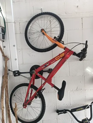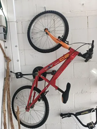 Bicicleta BMX de color rojo, ideal para trucos y diversión. Hay que arreglar la correa que se sale. - Cuadro de acero. - Ruedas de 20 pulgadas. - Frenos delanteros y traseros.
