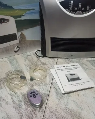 Generador de ozono para purificar aire y agua, con función ionizadora. Incluye control remoto y mangueras. - Incluye manual de instrucciones. - Mando a distancia incluido. - Nuevo con su embalaje
